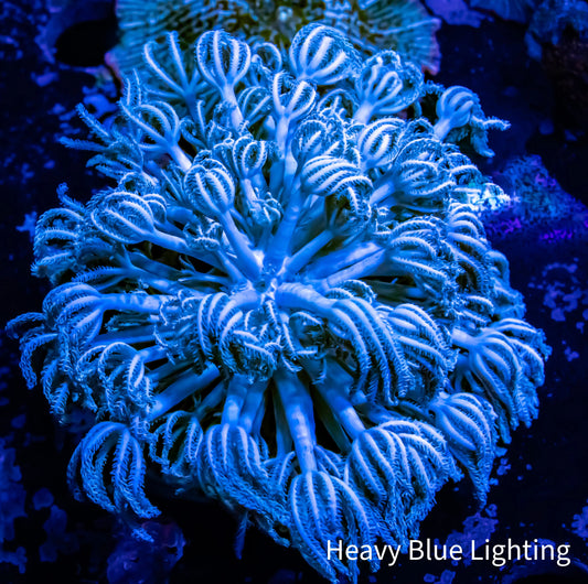 Shopping for live coral for sale online can be a source of worry for reef hobbyists, who can never be entirely sure what will arrive in the mail. Will it resemble the coral they saw online? While there is no substitute for an in-person viewing of the coral, we offer What You See Is What You Get (WYSIWYG) corals to alleviate concerns. Our WYSIWYG corals allow you to preview the actual coral fragment or colony before making a purchase. We take pride in photographing all our corals under Ecotech Radion G5 LED Light fixtures. We use professional-grade Full Frame DSLR cameras and lenses to capture the highest quality representation of the coral. We also provide multiple photos of the coral under different light spectrums, including full spectrum (white light) and heavy blue spectrum. We also offer size approximations for every coral in centimeters. This measurement is taken when the coral is fully expanded, providing you with a better understanding of the amount of space the coral will occupy in your aquarium.