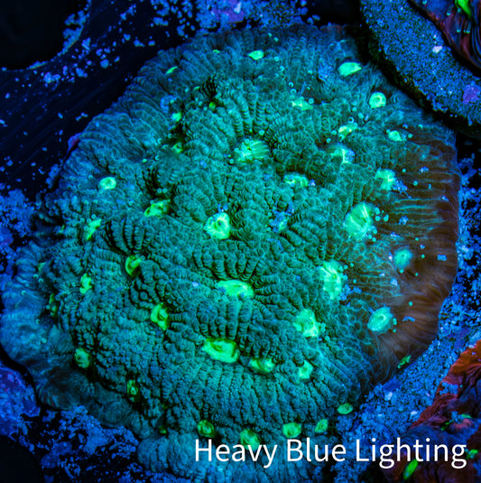 Shopping for live coral for sale online can be a source of worry for reef hobbyists, who can never be entirely sure what will arrive in the mail. Will it resemble the coral they saw online? While there is no substitute for an in-person viewing of the coral, we offer What You See Is What You Get (WYSIWYG) corals to alleviate concerns. Our WYSIWYG corals allow you to preview the actual coral fragment or colony before making a purchase. We take pride in photographing all our corals under Ecotech Radion G5 LED Light fixtures. We use professional-grade Full Frame DSLR cameras and lenses to capture the highest quality representation of the coral. We also provide multiple photos of the coral under different light spectrums, including full spectrum (white light) and heavy blue spectrum. We also offer size approximations for every coral in centimeters. This measurement is taken when the coral is fully expanded, providing you with a better understanding of the amount of space the coral will occupy in your aquarium.