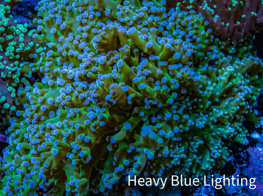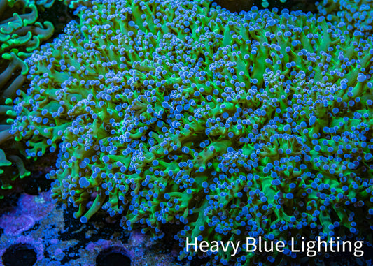 Shopping for live coral for sale online can be a source of worry for reef hobbyists, who can never be entirely sure what will arrive in the mail. Will it resemble the coral they saw online? While there is no substitute for an in-person viewing of the coral, we offer What You See Is What You Get (WYSIWYG) corals to alleviate concerns. Our WYSIWYG corals allow you to preview the actual coral fragment or colony before making a purchase. We take pride in photographing all our corals under Ecotech Radion G5 LED Light fixtures. We use professional-grade Full Frame DSLR cameras and lenses to capture the highest quality representation of the coral. We also provide multiple photos of the coral under different light spectrums, including full spectrum (white light) and heavy blue spectrum. We also offer size approximations for every coral in centimeters. This measurement is taken when the coral is fully expanded, providing you with a better understanding of the amount of space the coral will occupy in your aquarium.