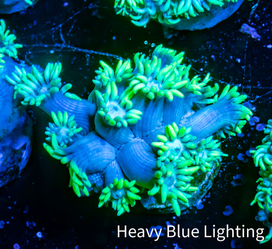 Shopping for live coral for sale online can be a source of worry for reef hobbyists, who can never be entirely sure what will arrive in the mail. Will it resemble the coral they saw online? While there is no substitute for an in-person viewing of the coral, we offer What You See Is What You Get (WYSIWYG) corals to alleviate concerns. Our WYSIWYG corals allow you to preview the actual coral fragment or colony before making a purchase. We take pride in photographing all our corals under Ecotech Radion G5 LED Light fixtures. We use professional-grade Full Frame DSLR cameras and lenses to capture the highest quality representation of the coral. We also provide multiple photos of the coral under different light spectrums, including full spectrum (white light) and heavy blue spectrum. We also offer size approximations for every coral in centimeters. This measurement is taken when the coral is fully expanded, providing you with a better understanding of the amount of space the coral will occupy in your aquarium.