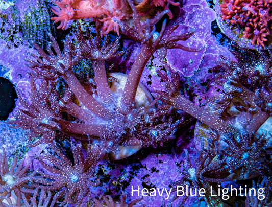 Shopping for live coral for sale online can be a source of worry for reef hobbyists, who can never be entirely sure what will arrive in the mail. Will it resemble the coral they saw online? While there is no substitute for an in-person viewing of the coral, we offer What You See Is What You Get (WYSIWYG) corals to alleviate concerns. Our WYSIWYG corals allow you to preview the actual coral fragment or colony before making a purchase. We take pride in photographing all our corals under Ecotech Radion G5 LED Light fixtures. We use professional-grade Full Frame DSLR cameras and lenses to capture the highest quality representation of the coral. We also provide multiple photos of the coral under different light spectrums, including full spectrum (white light) and heavy blue spectrum. We also offer size approximations for every coral in centimeters. This measurement is taken when the coral is fully expanded, providing you with a better understanding of the amount of space the coral will occupy in your aquarium.