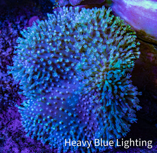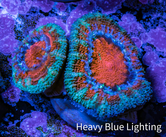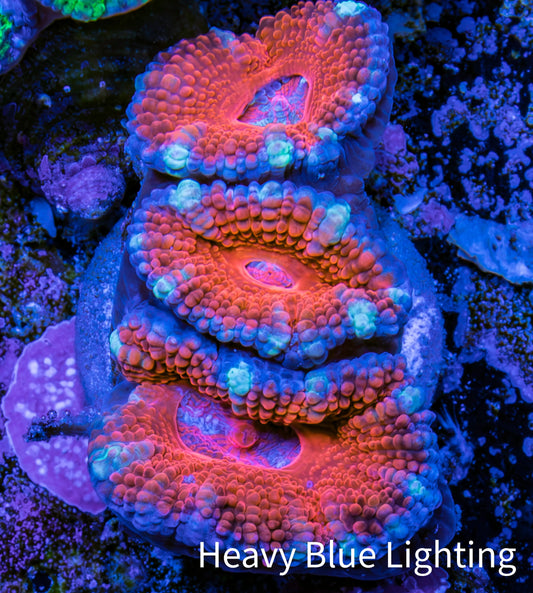 Shopping for live coral for sale online can be a source of worry for reef hobbyists, who can never be entirely sure what will arrive in the mail. Will it resemble the coral they saw online? While there is no substitute for an in-person viewing of the coral, we offer What You See Is What You Get (WYSIWYG) corals to alleviate concerns. Our WYSIWYG corals allow you to preview the actual coral fragment or colony before making a purchase. We take pride in photographing all our corals under Ecotech Radion G5 LED Light fixtures. We use professional-grade Full Frame DSLR cameras and lenses to capture the highest quality representation of the coral. We also provide multiple photos of the coral under different light spectrums, including full spectrum (white light) and heavy blue spectrum. We also offer size approximations for every coral in centimeters. This measurement is taken when the coral is fully expanded, providing you with a better understanding of the amount of space the coral will occupy in your aquarium.
