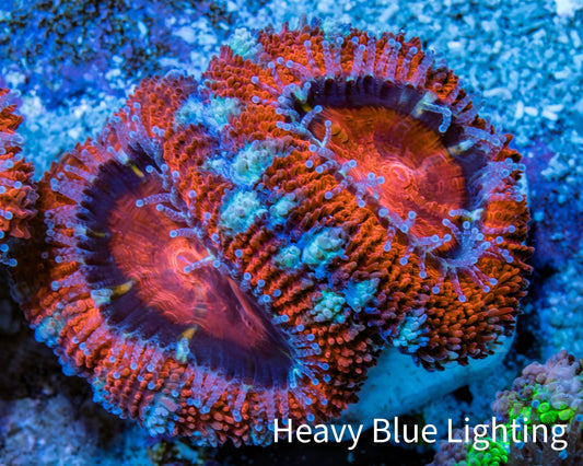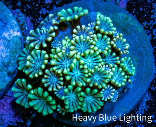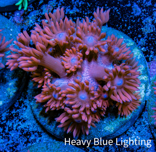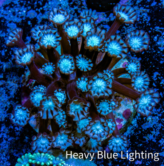 Shopping for live coral for sale online can be a source of worry for reef hobbyists, who can never be entirely sure what will arrive in the mail. Will it resemble the coral they saw online? While there is no substitute for an in-person viewing of the coral, we offer What You See Is What You Get (WYSIWYG) corals to alleviate concerns. Our WYSIWYG corals allow you to preview the actual coral fragment or colony before making a purchase. We take pride in photographing all our corals under Ecotech Radion G5 LED Light fixtures. We use professional-grade Full Frame DSLR cameras and lenses to capture the highest quality representation of the coral. We also provide multiple photos of the coral under different light spectrums, including full spectrum (white light) and heavy blue spectrum. We also offer size approximations for every coral in centimeters. This measurement is taken when the coral is fully expanded, providing you with a better understanding of the amount of space the coral will occupy in your aquarium.