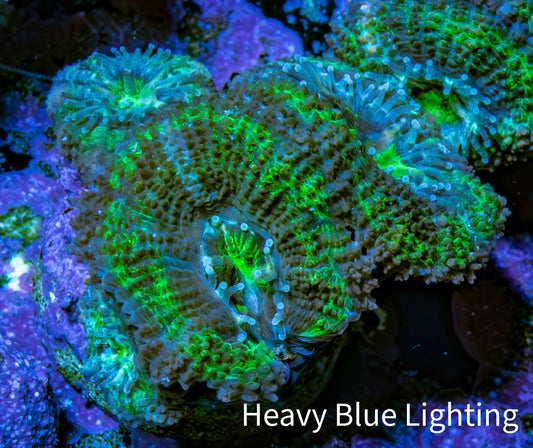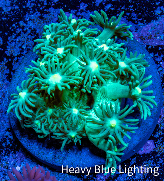 Ultra Blue Tip Neon Green Stem Reverse Frogspawn Coral - WYSIWYG 13cm