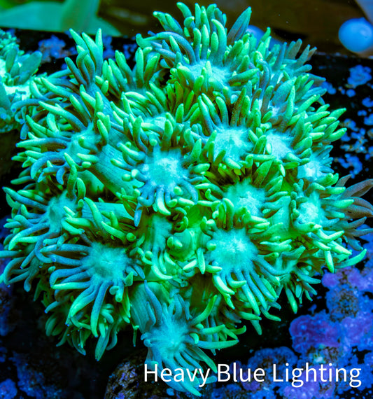 Shopping for live coral for sale online can be a source of worry for reef hobbyists, who can never be entirely sure what will arrive in the mail. Will it resemble the coral they saw online? While there is no substitute for an in-person viewing of the coral, we offer What You See Is What You Get (WYSIWYG) corals to alleviate concerns. Our WYSIWYG corals allow you to preview the actual coral fragment or colony before making a purchase. We take pride in photographing all our corals under Ecotech Radion G5 LED Light fixtures. We use professional-grade Full Frame DSLR cameras and lenses to capture the highest quality representation of the coral. We also provide multiple photos of the coral under different light spectrums, including full spectrum (white light) and heavy blue spectrum. We also offer size approximations for every coral in centimeters. This measurement is taken when the coral is fully expanded, providing you with a better understanding of the amount of space the coral will occupy in your aquarium.