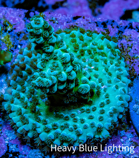 Shopping for live coral for sale online can be a source of worry for reef hobbyists, who can never be entirely sure what will arrive in the mail. Will it resemble the coral they saw online? While there is no substitute for an in-person viewing of the coral, we offer What You See Is What You Get (WYSIWYG) corals to alleviate concerns. Our WYSIWYG corals allow you to preview the actual coral fragment or colony before making a purchase. We take pride in photographing all our corals under Ecotech Radion G5 LED Light fixtures. We use professional-grade Full Frame DSLR cameras and lenses to capture the highest quality representation of the coral. We also provide multiple photos of the coral under different light spectrums, including full spectrum (white light) and heavy blue spectrum. We also offer size approximations for every coral in centimeters. This measurement is taken when the coral is fully expanded, providing you with a better understanding of the amount of space the coral will occupy in your aquarium.